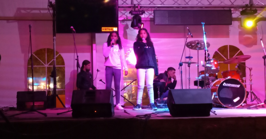 Está comenzando la actividad artística en la plaza confraternidad de Vergara. En estos momentos Valentina y Valeria ganadoras del Megavoz kids 2021