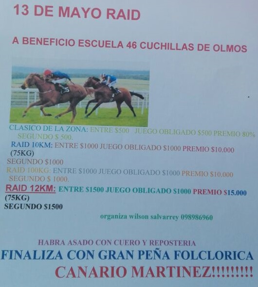 Sábado 13 de mayo raíd a beneficio de la Escuela Nro. 46 de Cuchilla de Olmos.